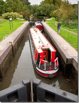 The impressive Twyford Lock seems to dwarf poor little Northern Pride
